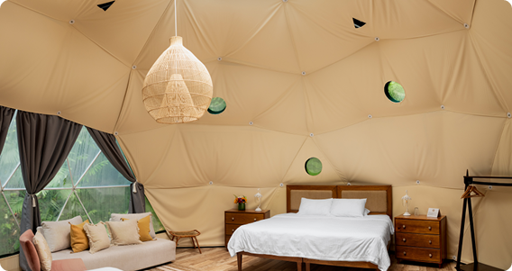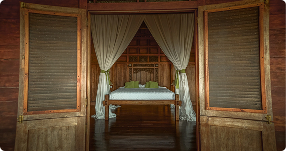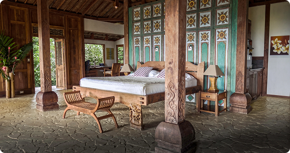 Inspired by sacred geometry, the Geodesic River Domes sit in the rainforest along the edge of a private river. Enjoy the sounds of flowing water paired with the vibrant sounds of the jungle. AC, private bath, and balcony.