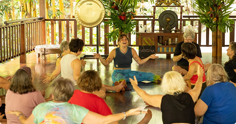 Yoga Nidra, sound bath, fire circle, or community dance.